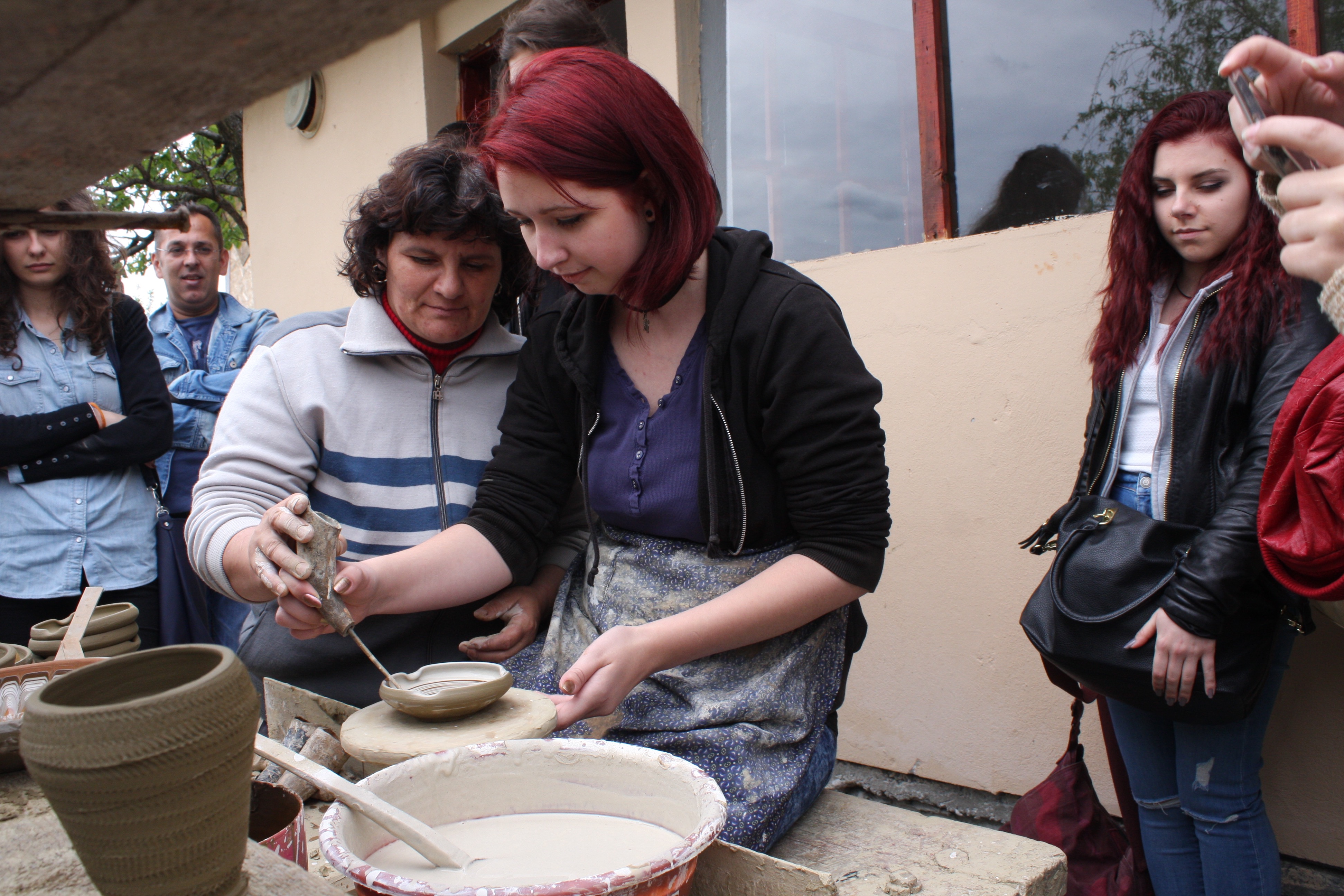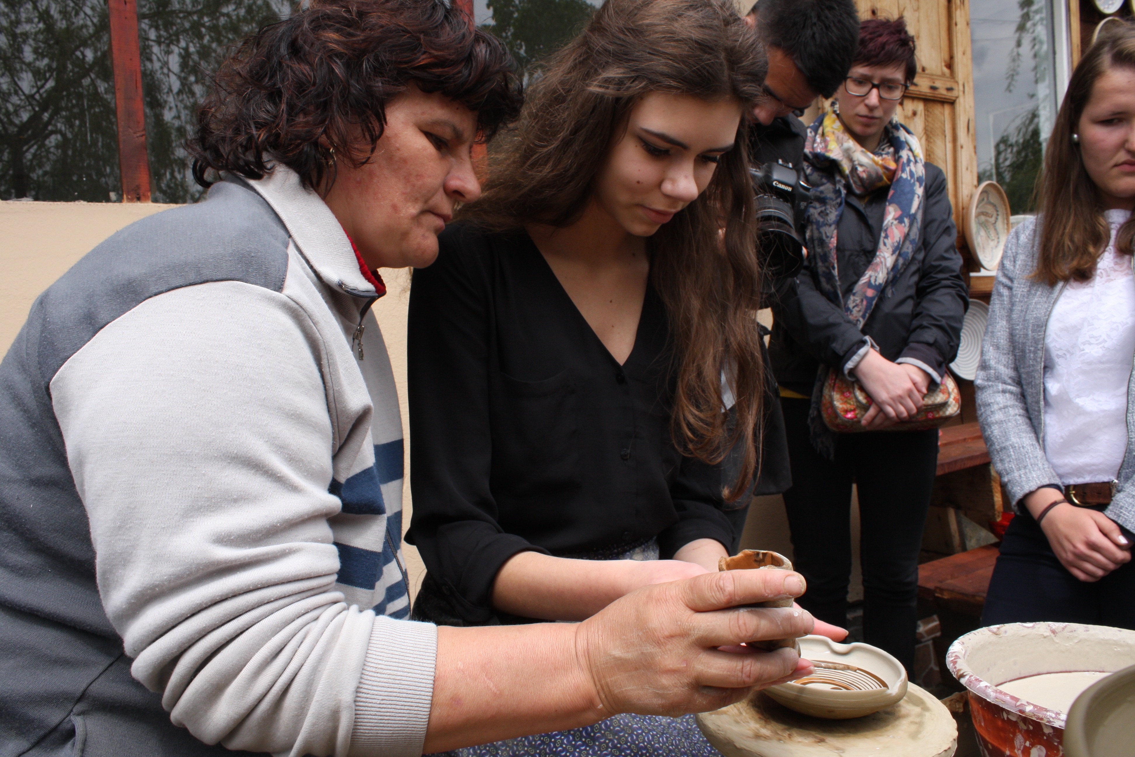 During the short-term exchange to Romania, students visited the picturesque town of Horezu, part of the UNESCO World Heritage. There, they admired ladies modelling clay on the wheel and decorating plates with traditional patterns and motifs.