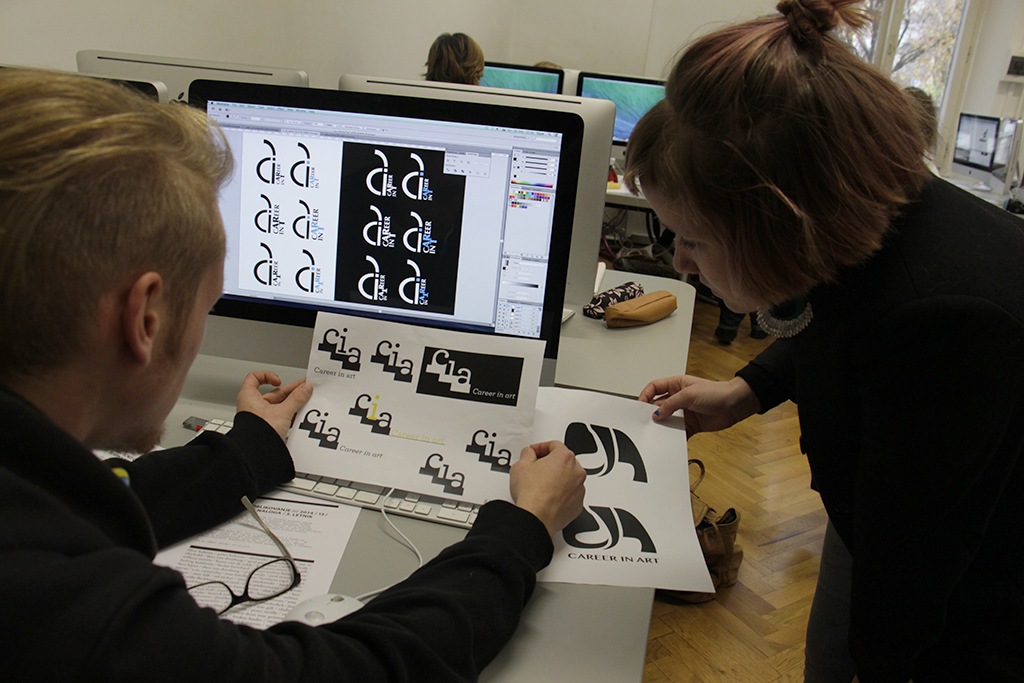 The very first task of our project was to create a logo for the project Career in Art. Students from all partner schools were invited to enter the international call for tender, which had the objective to teach students how to approach tenders, how to develop their ideas, how to verbalize their graphic solutions, and, last but not least, how to approach potential clients.