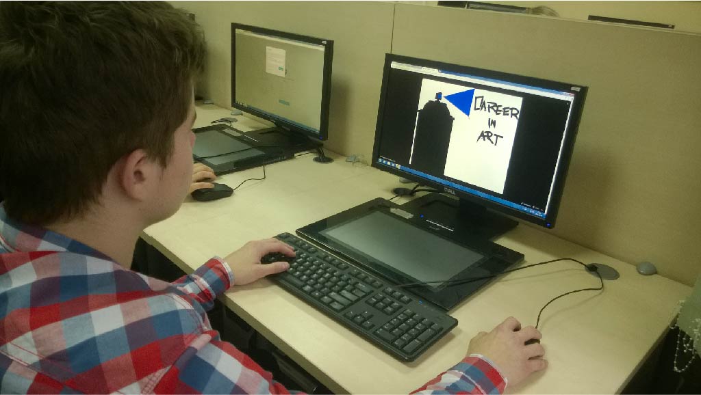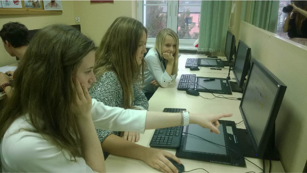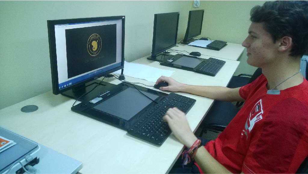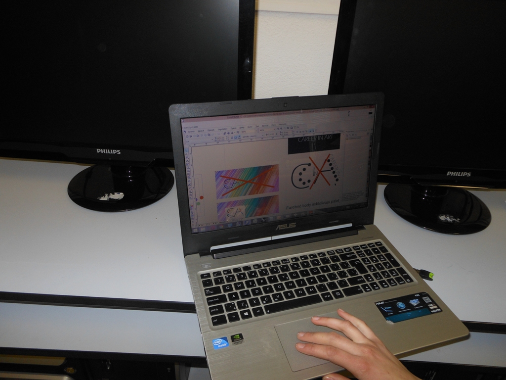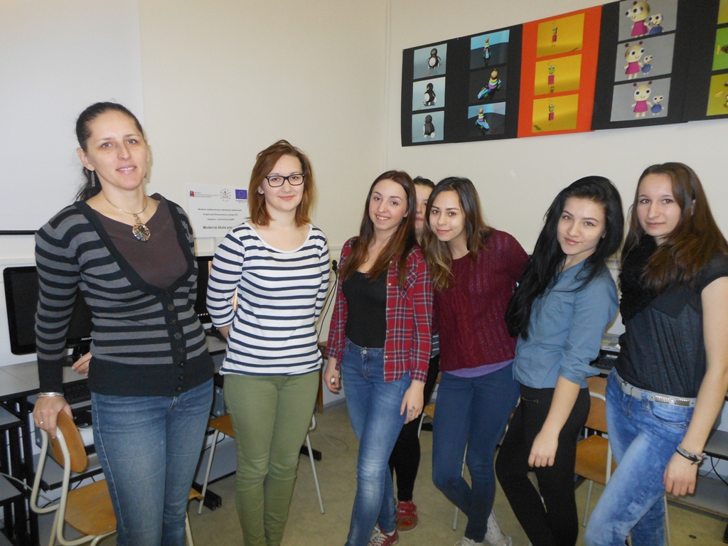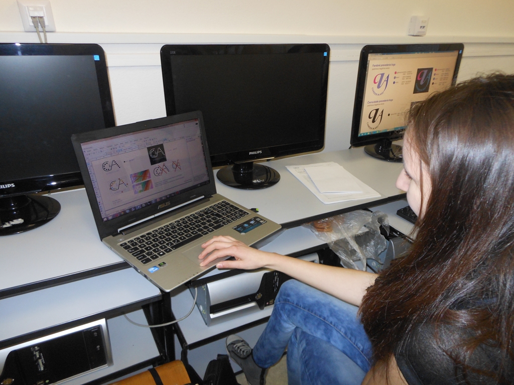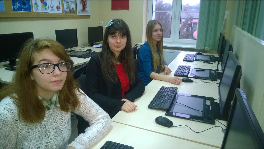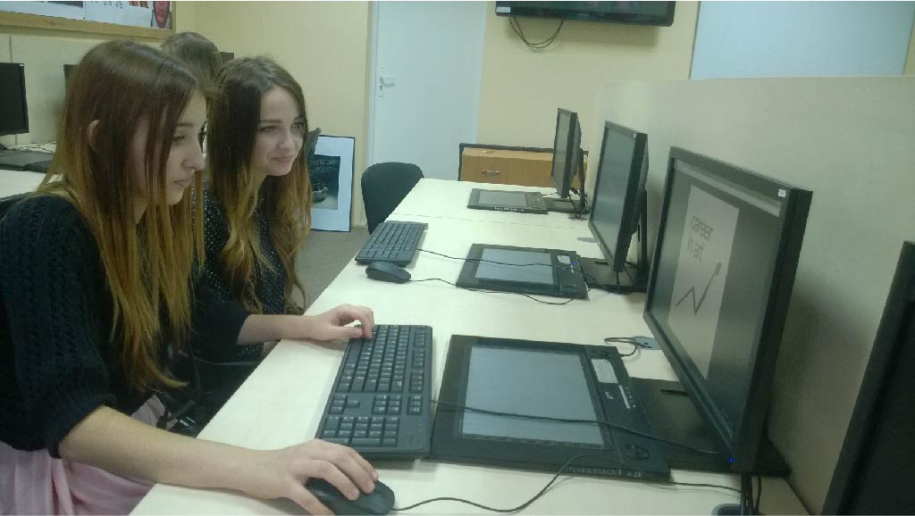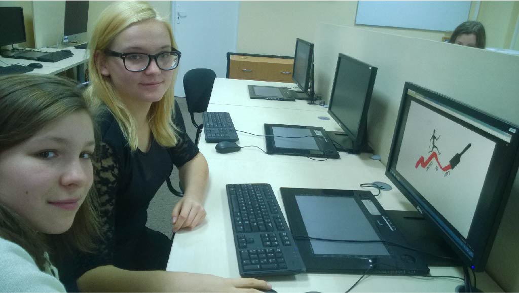 On the photo is one of the groups of students who are working to create a logo for an Erasmus + "Career in Art" under the direction of art teacher. The competition involved 20 students of 3rd and 4th classes. The professional jury selected two best of them.
